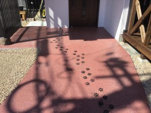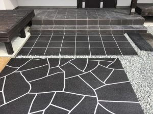 一般道路の注意喚起や駐車場のカラー化やアプローチのアクセントに用いる景観を兼ね備えた滑り止め工事です。ぜひ、弊社推奨の足元リフォームを!